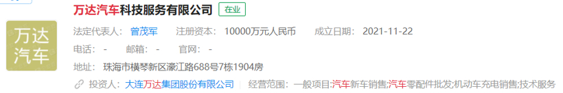 万达汽车科技服务有限公司相关信息,图片来源:企查查