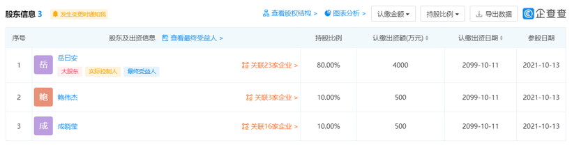 而要知道,万达汽车的另一持股人即泰庆(北京)科技有限公司是一家于2021年10月13日刚刚成立的新公司,其背后的大股东就是山东泰岳集团董事长岳曰安,持股80%。