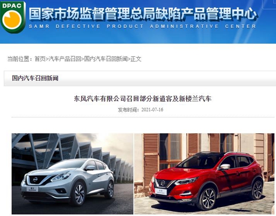此外,东风汽车有限公司决定自7月16日起,召回共计23710辆日产新逍客及新楼兰汽车。召回原因为车辆尾门铰链的轴销,因供应商制造原因导致强度不满足标准要求。车辆尾门在碰撞事故中受到大的外力冲击时,铰链的轴销可能产生开裂;极端情况下,尾门有脱落的风险,存在安全隐患。对此,公司将免费为召回范围内的车辆更换合格的尾门铰链,以消除安全隐患。