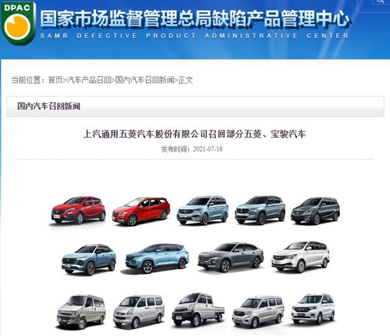 7月16日,国家市场监督管理总局发布4起汽车召回公告,涉及五菱、宝骏、日产、欧拉、奇瑞5个品牌的共计1478330辆汽车将被召回。