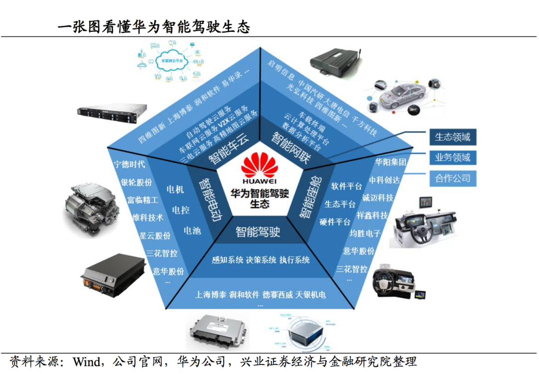 智能电动:目前的核心是构建高效、快充、安全、智能的电动系统,华为在车载充电、电池管理、电机控制系统等方面均已进行了相关的技术储备;