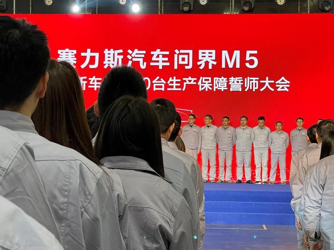 近日,赛力斯汽车问界M5誓师大会的照片在网上曝光,显示:一季度计划生产10000辆问界M5;工厂内还悬挂着“打造伟大产品,创造伟大事业,实现伟大梦想”的条幅。
