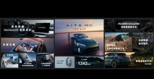 2021年12月23日,余承东高调发布高端AITO品牌首款SUV——问界M5,新车由华为深度赋能,预售价为25-32万元,共有三个车型。